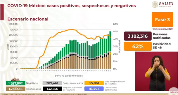 Ciudad de México.– La Secretaría de Salud reporta los más recientes decesos y contagios por coronavirus (Covid-19), este sábado 12 de diciembre se registró la cifra de 1 millón 241 mil 436 casos confirmados acumulados.