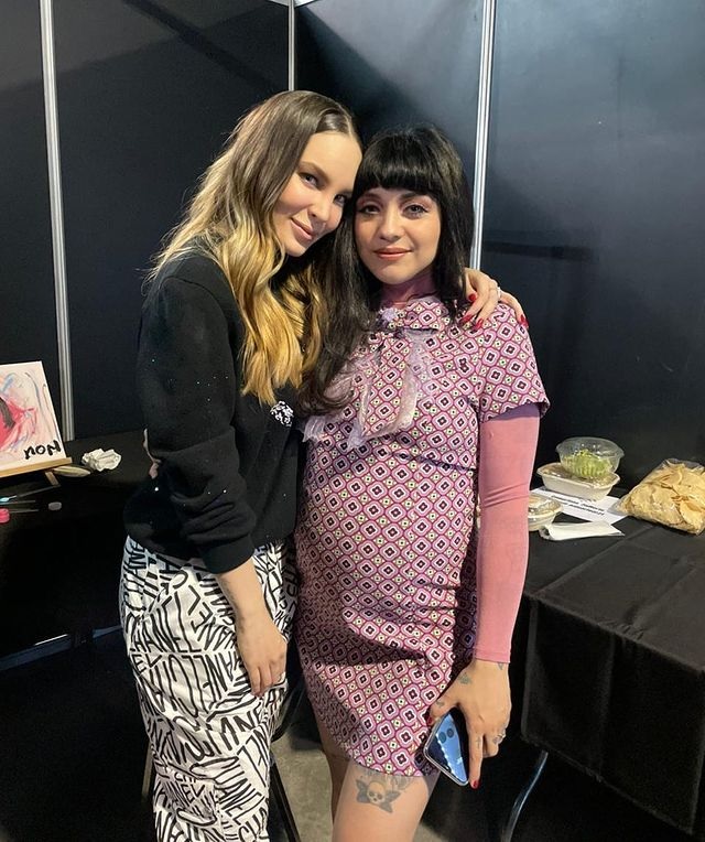 Mon Laferte, quien este viernes se presentó en el festival que se realiza en el Parque Fundidora, en Monterrey, Nuevo León, fue sorprendida por Belinda cuando ésta llegó a su camerino.