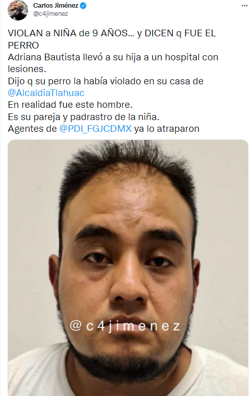 De acuerdo con el periodista Carlos Jiménez tras una investigación el padrastro de la víctima fue detenido por la Policía de Investigación de la Fiscalía General de Justicia de la Ciudad de México.
