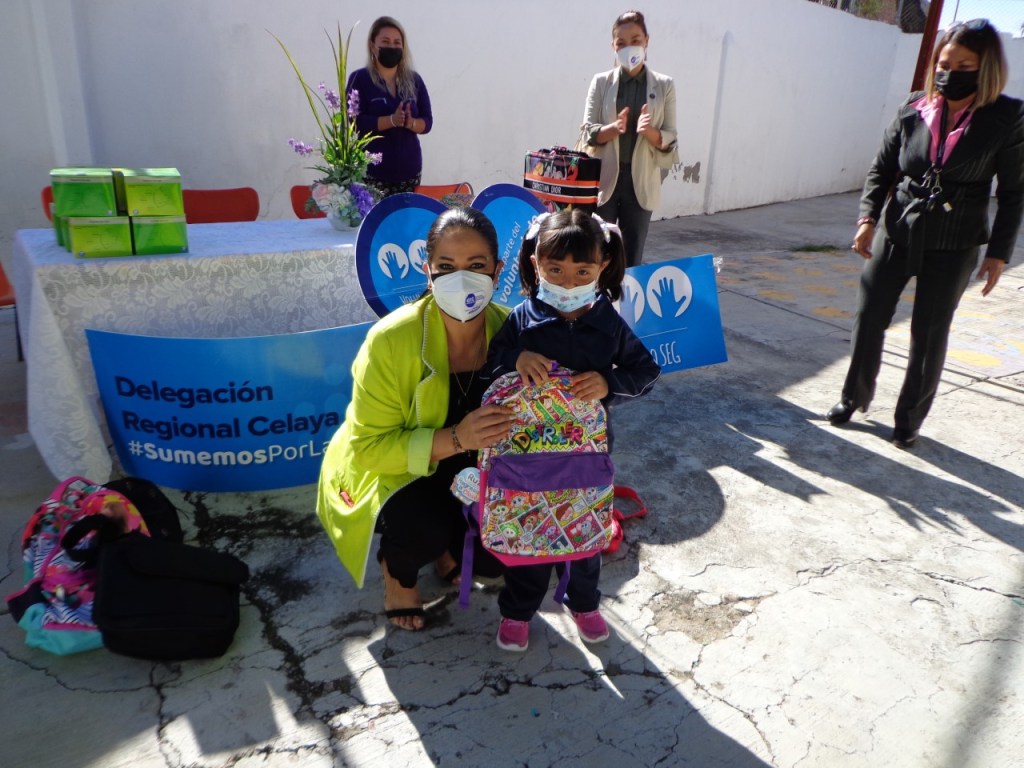 Celaya, Guanajuato.- El voluntariado SEG Región Este, regalan mochilas y útiles escolares a estudiantes de Celaya para incentivarlos.