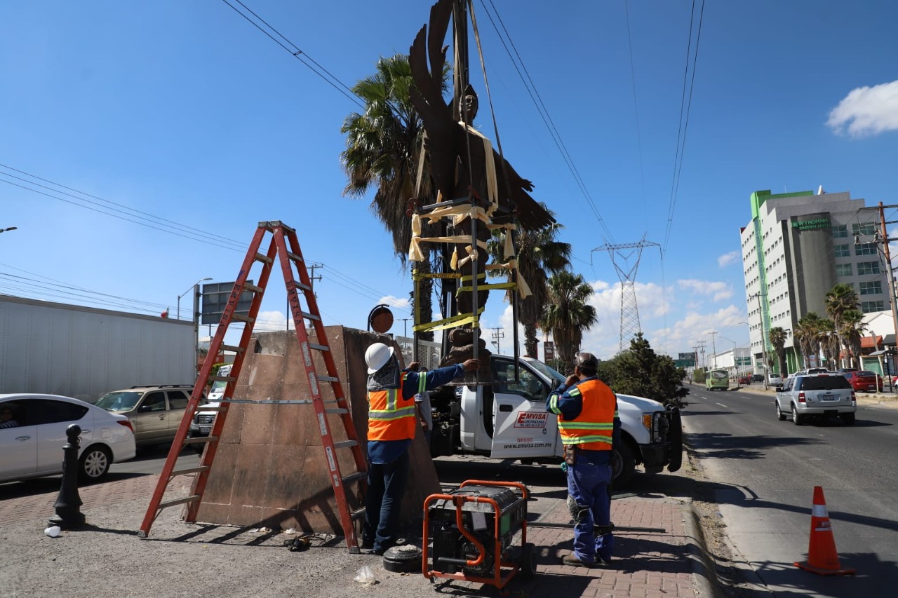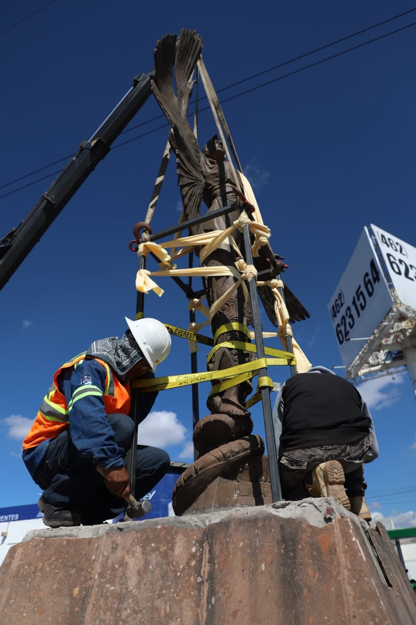 Previo a la entrega formal, se realizó una inspección del anclaje de la escultura, en diciembre pasado, y este 25 de enero se procedió a realizar los movimientos de retiro de la escultura Mexicayótl para trasladarla a Irapuato, por parte de la propia Asociación.