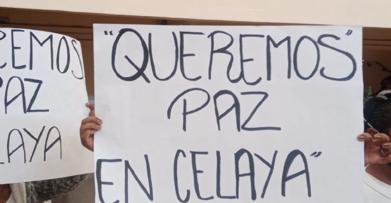En las pancartas se puede leer que quieren un Celaya en paz, que se les tiene más miedo a los fedepales que a los delincuentes, que el presidente cumpla su promesa de devolver la paz, entre otros.