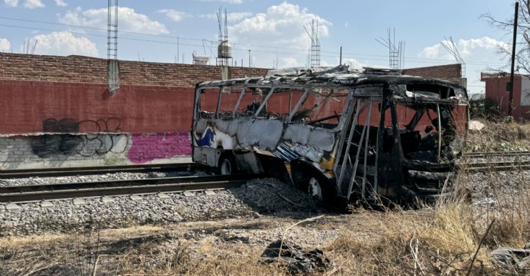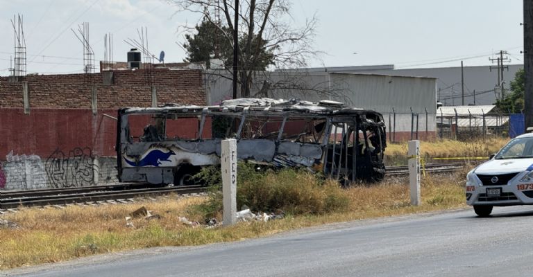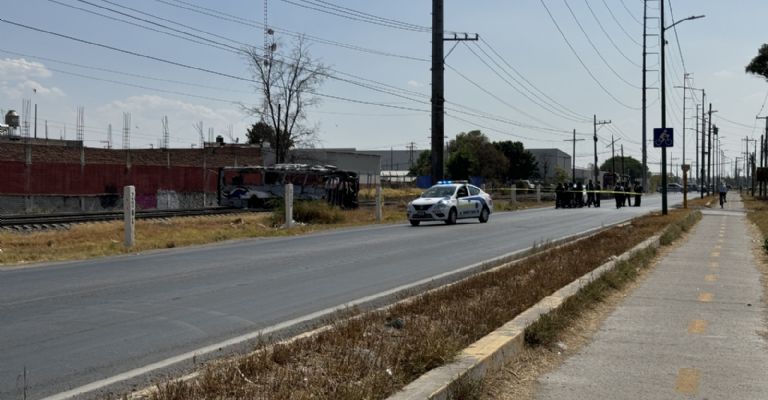 Celaya.- Por intentar ganarle el paso al tren, un camión de transporte de personal fue embestido por el ferrocarril y arrastrado, para después ser consumido por las llamas sobre la carretera alterna Celaya-Villagrán.