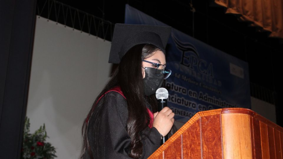 También invitó a los ahora licenciados a ser proactivos y provocar el bien común dentro de su entorno. Mencionó que a lo largo de su trayecto en Universidad EPCA, cada uno descubrió sus talentos que ahora se convierten en un estímulo de gran satisfacción. De manera alternada los diferentes grupos de Administración y Contaduría fueron subiendo al escenario para recibir su reconocimiento y tomarse la foto oficial. Amenizó la ceremonia Grupo Martell quién tocó las piezas musicales Castillo de hielo, La vida en rosa, A mi manera, Por ti volaré y Las golondrinas para cerrar el acto.