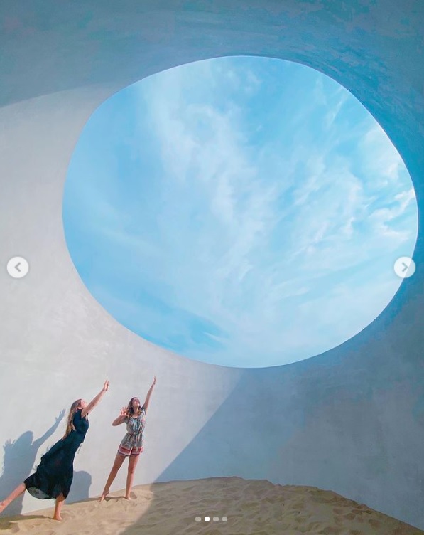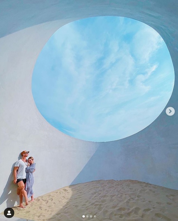 La también actriz de 49 años también subió otras imágenes en las que aparece con su familia: su esposo Erik Rubín y sus hijas Mía y Nina Rubín admirando una bola de nubes, queriendo ser alcanzada por los famosos.