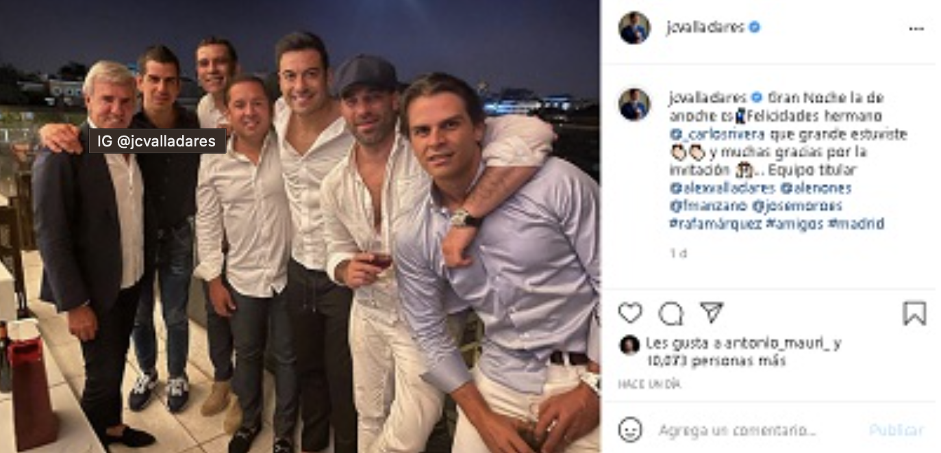 Tras ello pasaron una velada al lado del futbolista Rafa Márquez y Juan Carlos Valladares, el esposo de Ximena Navarrete, entre otras amistades.