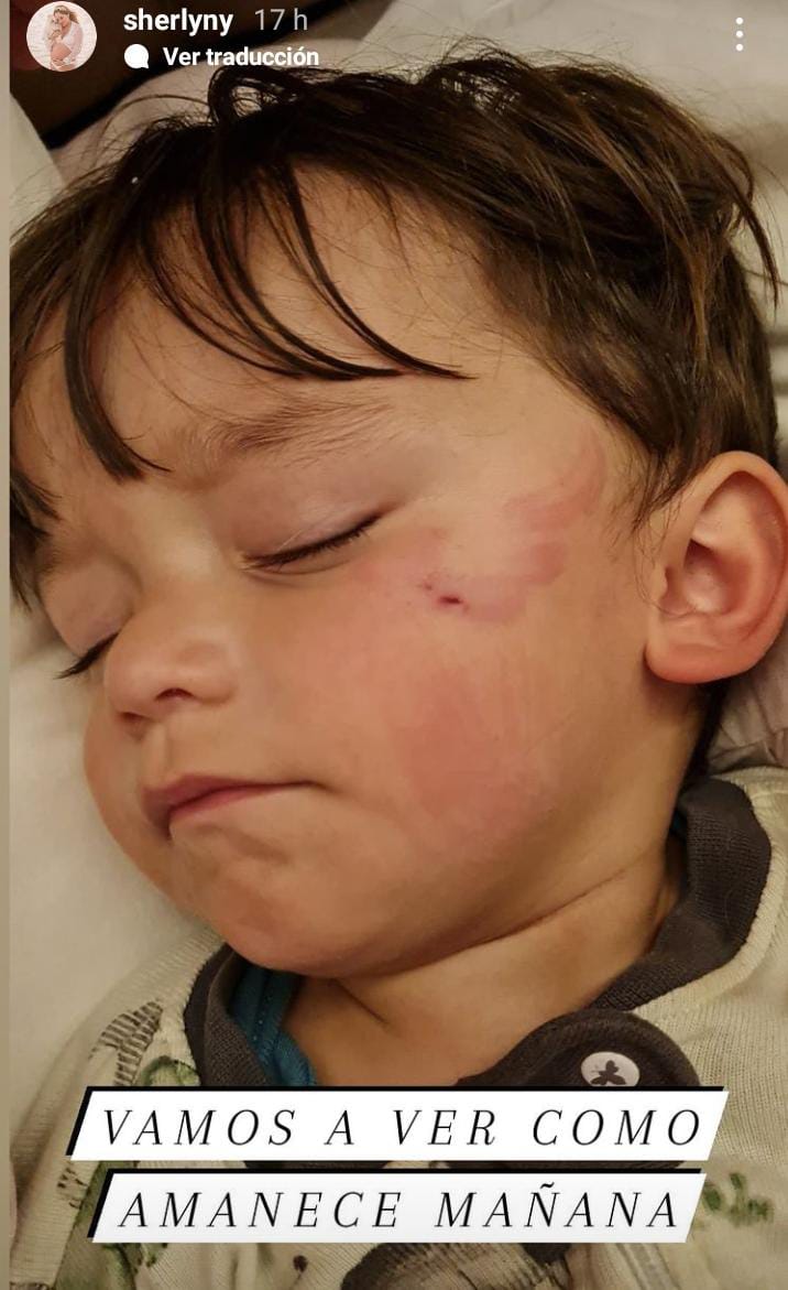 CDMX.- Fue a través de una historia de Instagram, que Sherlyn compartió que su pequeño hijo André fue mordido por su perrita Neni, cuando la abrazó.