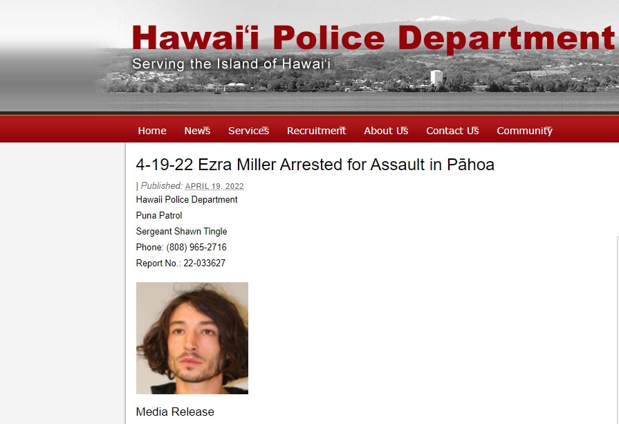 Ezra Miller se enfureció después de que le pidieron que se retirara de una fiesta en una casa de la isla de Hawái y arrojó una silla, golpeando a una mujer en la frente, señala un comunicado del Departamento de Policía de Hawái, según informó AP.