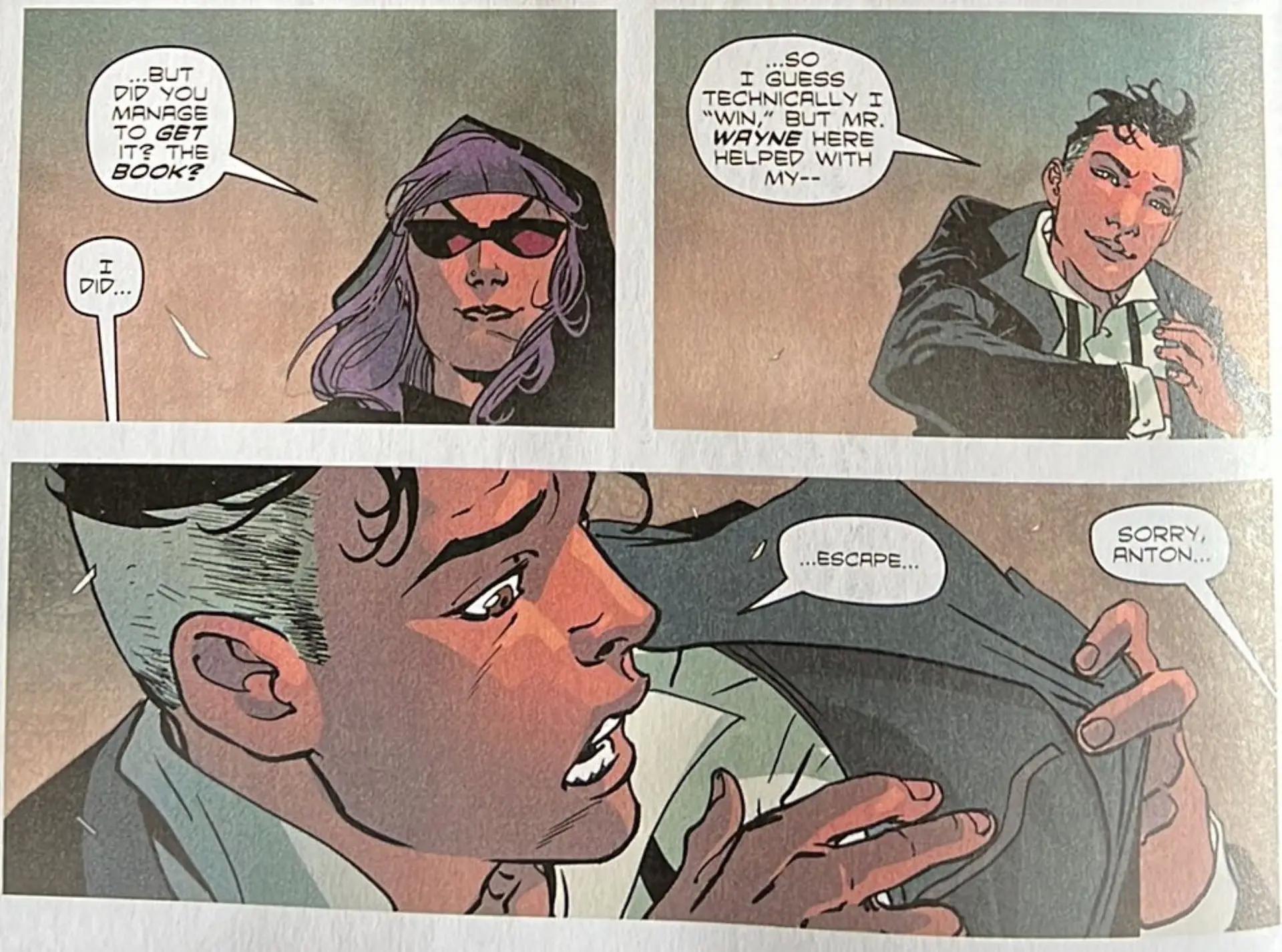 En el cómic, se plantea una nueva trama en la que un joven de nombre Bruce Wayne se acerca a Anton, su compañero de prácticas, y mientras ambos hombres se miran profundamente a los ojos y justo al momento de aproximarse, que parece que están a punto de besarse, son interrumpidos.