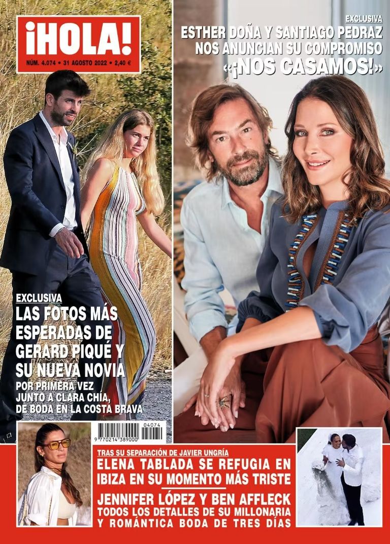 Gerard Piqué y Clara Chía Martí, llegando juntos a la boda de uno de los mejores amigos del futbolista, Albert Pedret, con Anna Tormo, en la Costa Brava. Abrazados, de la mano, muy cómplices y sonrientes, los gestos de la pareja no pueden ser más elocuentes: el futbolista no esconde que está enamorado”, consigna la revista.
