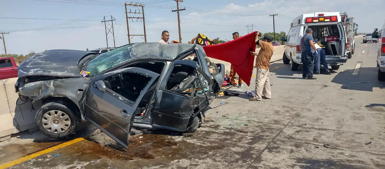 Los hechos se registraron sobre la carretera San Luis Río Colorado-Mexicali, dirección San Luis Río Colorado, en Baja California, después de que dos automóviles, un Jetta color gris modelo 2003 placas 6WOR704 de California y una Toyota Corolla color blanco modelo 2012, se impactaran.