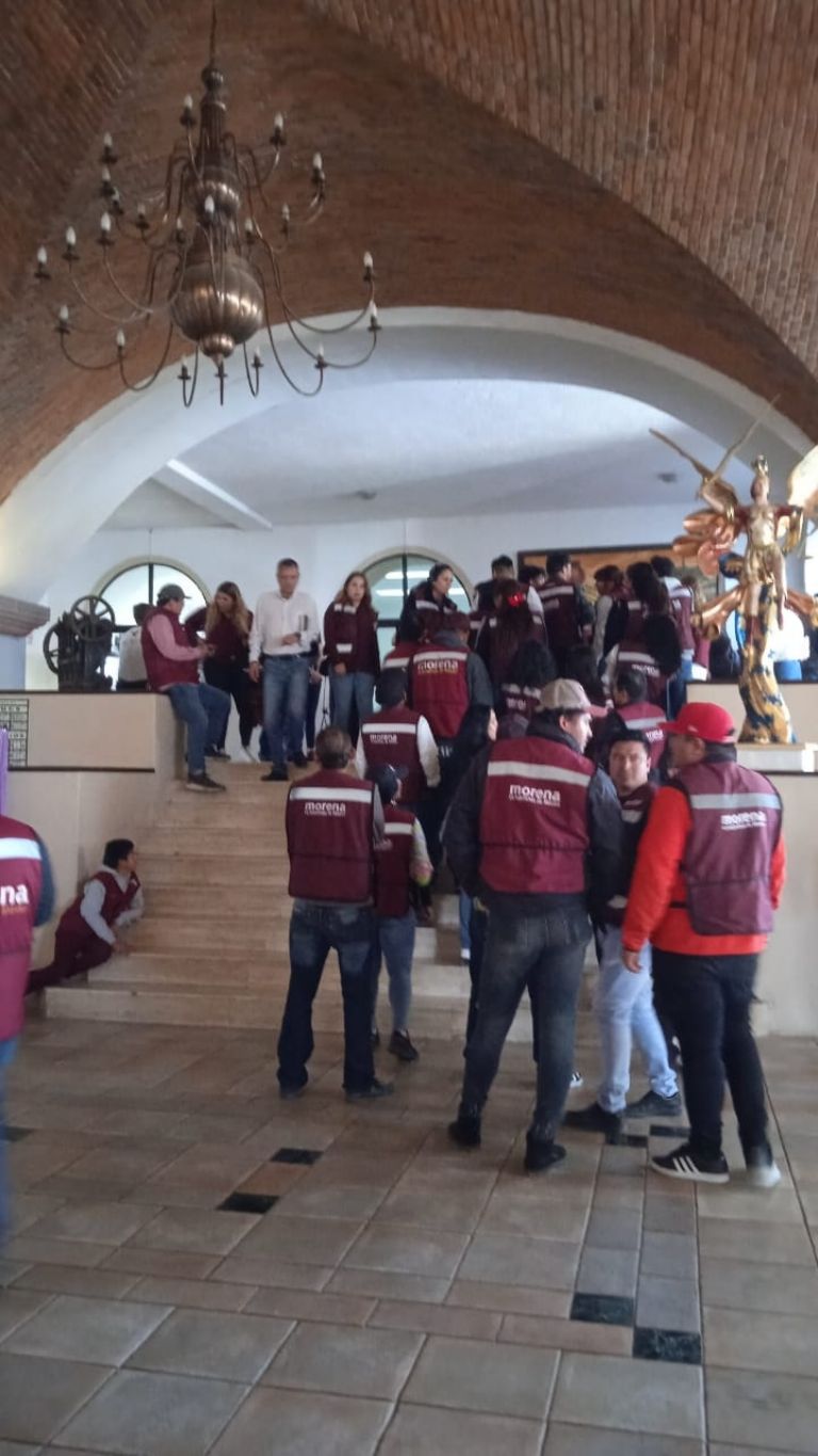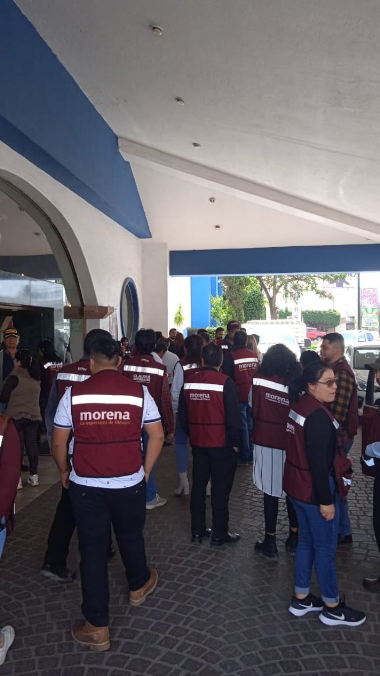 Cabe mencionar que desde, aproximadamente, la una de la tarde comenzaron a llegar al punto de reunión varios simpatizantes de Morena ataviados en un saco que los identifica como parte de las estructuras de Morena en Guanajuato.