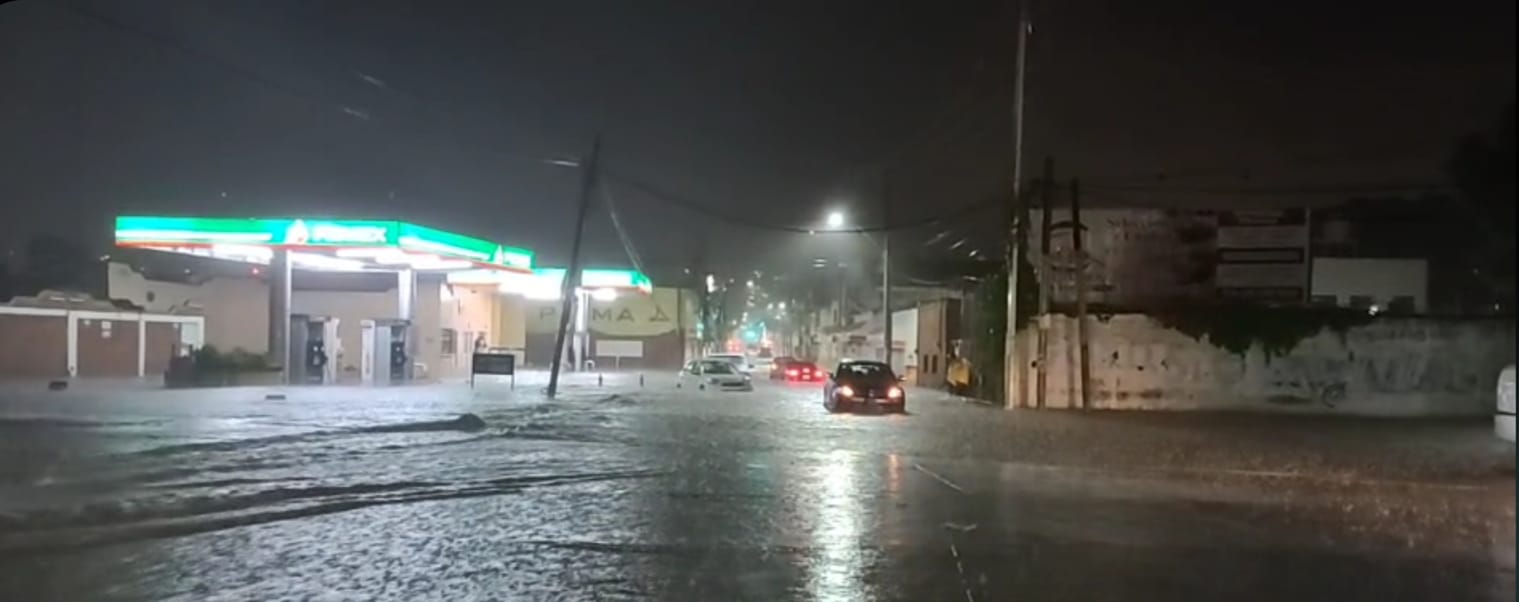 La fuerte lluvia comenzó minutos antes de las 8:00 de la noche ocasionando corrientes de agua en las colonias IVEG y Magisterial.