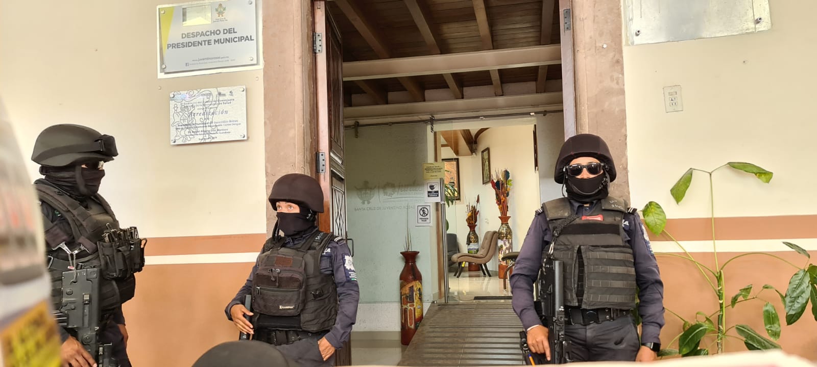 La Presidencia Municipal es vigilada por dos patrullas de las Fuerzas de Seguridad Pública del Estado y a la una y media de la tarde, el helicóptero sobrevolaba la comunidad de San Antonio de Morales.