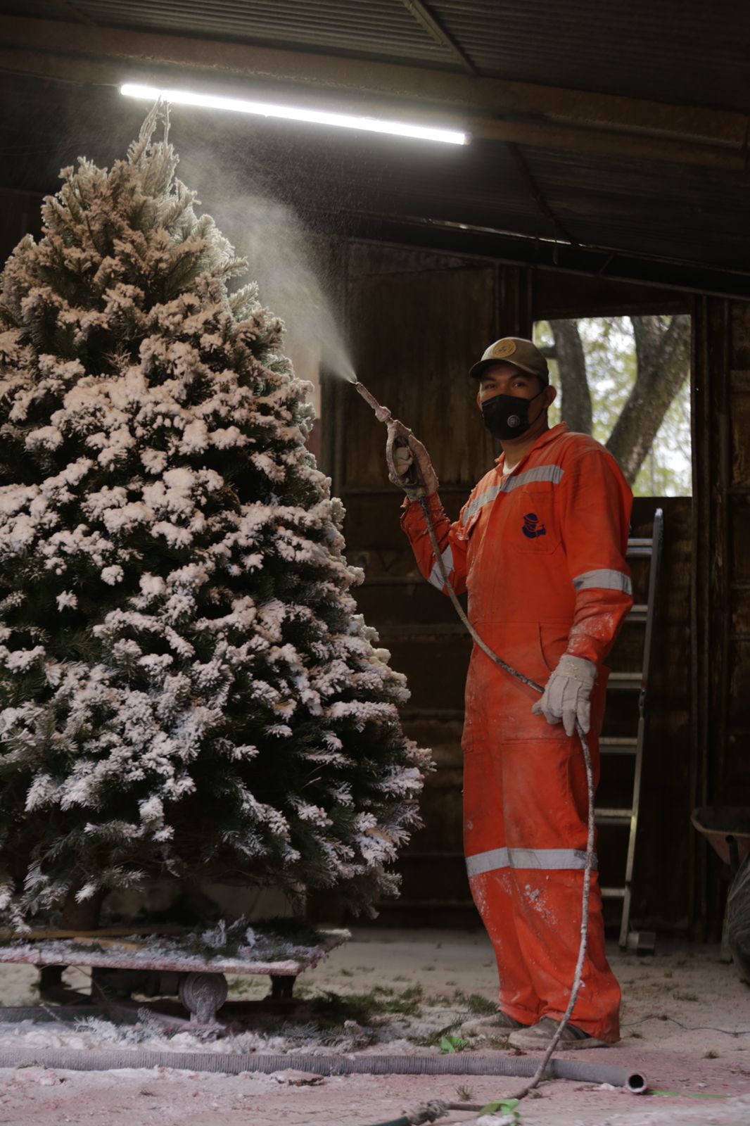 El nevado artificial se pone con una máquina y éste se va pegando al pino navideño, además los compradores tienen la decisión de qué tan abundante sea la nieve”, dijo Alfonso.