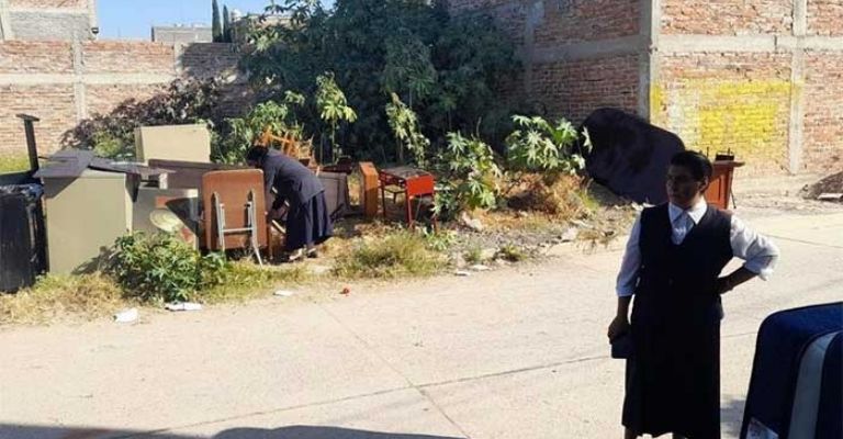 Todas los artículos y muebles como camas, objetos de cocina e incluso cuadros religiosos fueron sacados a la calle.
