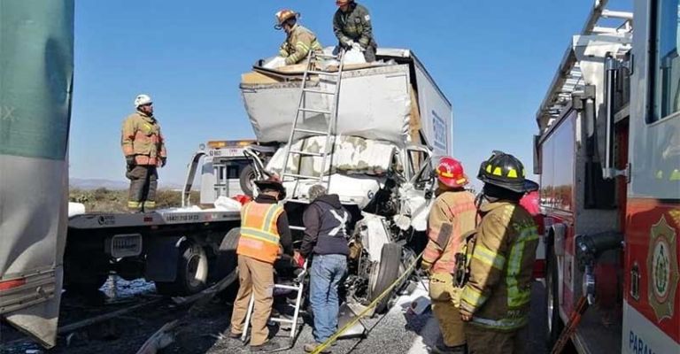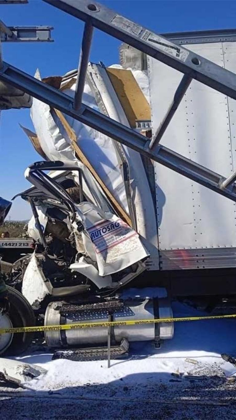 San Luis de la Paz, Guanajuato.- Dos personas fallecidas y cuantiosos daños materiales provocó el choque entre por lo menos tres tractocamiones en la carretera federal 57, a la altura del kilómetro 112.