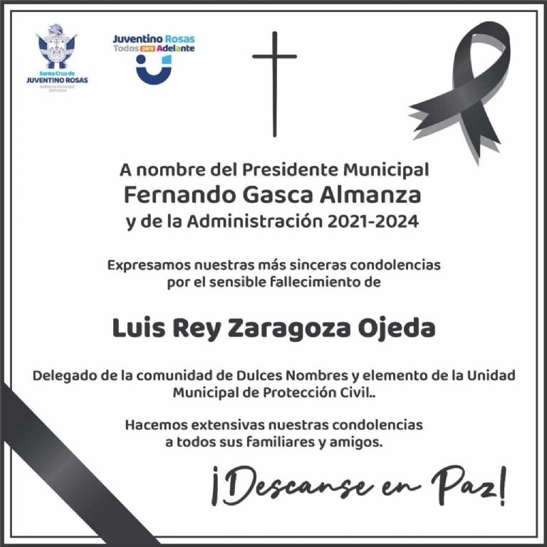 A través de redes sociales, el Gobierno Municipal de Juventino Rosas, mandó sus condolencias a la familia.