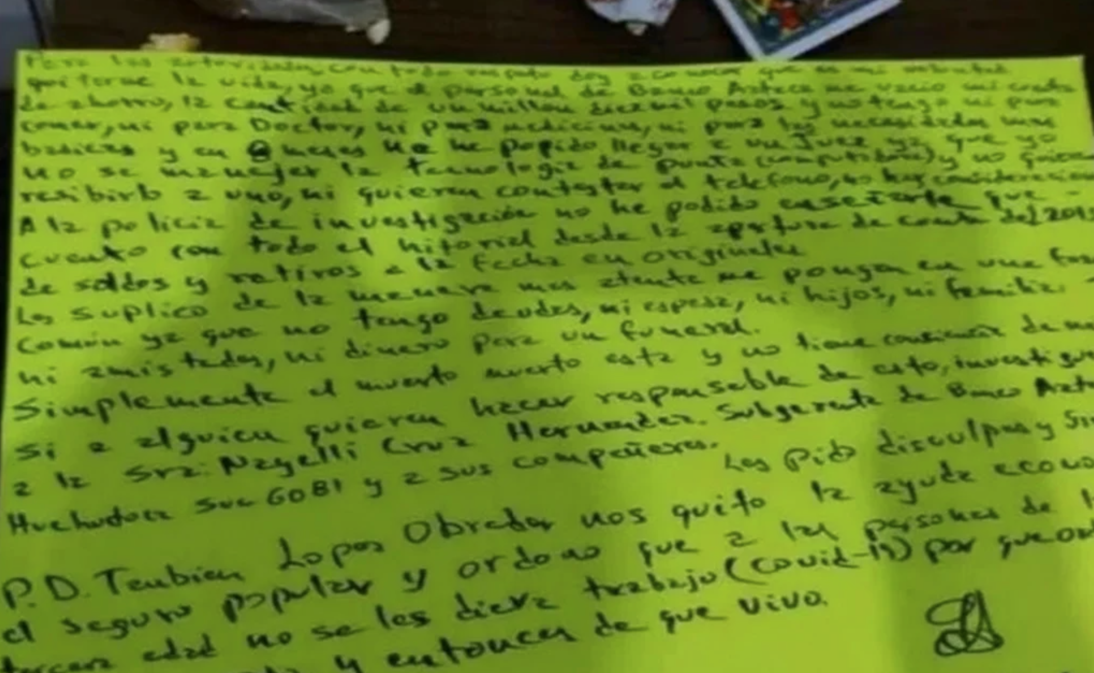 Cuando Gerardo se percató que su cuenta de ahorros se encontraba sin fondos, trató de denunciar el hecho y dejó escrito que acudió ante diversas autoridades, quienes no lo atendieron por la pandemia y el 20 de febrero se habría suicidado.