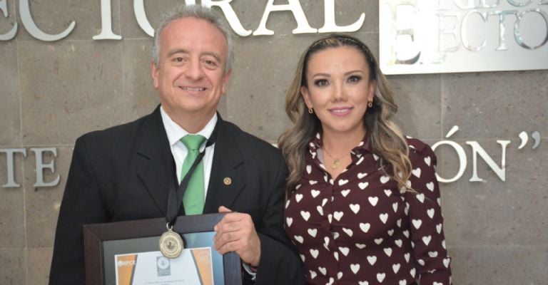 La magistrada presidenta del TEEH, Rosa Amparo Martínez Lechuga, mencionó que la Medalla al mérito electoral destaca la trayectoria profesional y el alto valor de la abogacía en el desempeño de la administración procuración, impartición o litigación en el campo del derecho y la justicia electoral.