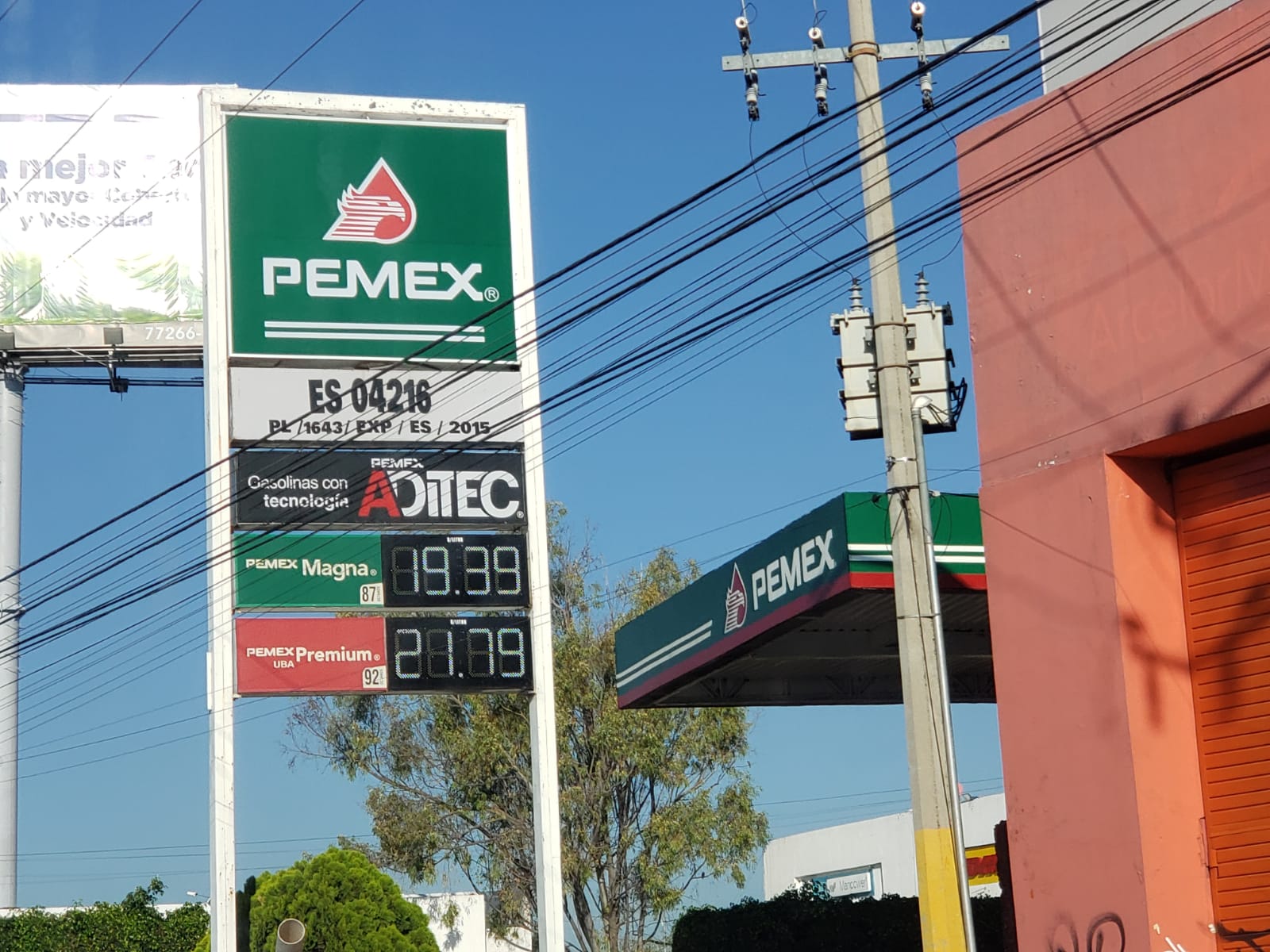 El litro de gasolina magna (verde) más barata se localizó en 19.39 pesos en Pemex del bulevar Torres Landa y el bulevar San Pedro.