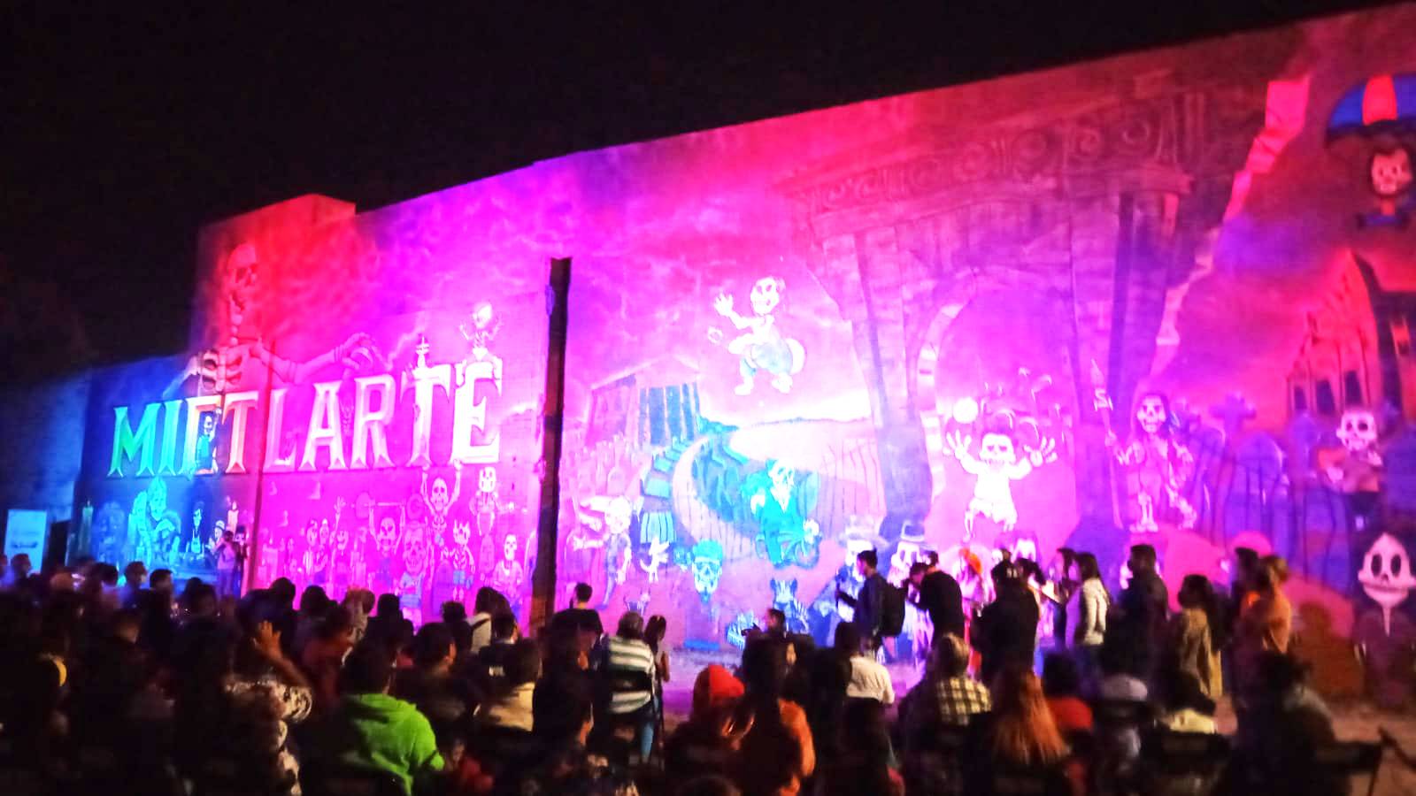 León, Guanajuato – A vísperas del Día de Muertos en León, se realizó la quinta edición del festival de arte urbano ‘Mictlarte’ en el Panteón de San Sebastián donde se inauguraron dos murales con catrinas, deidades mayas y calaveras mitoteras.
