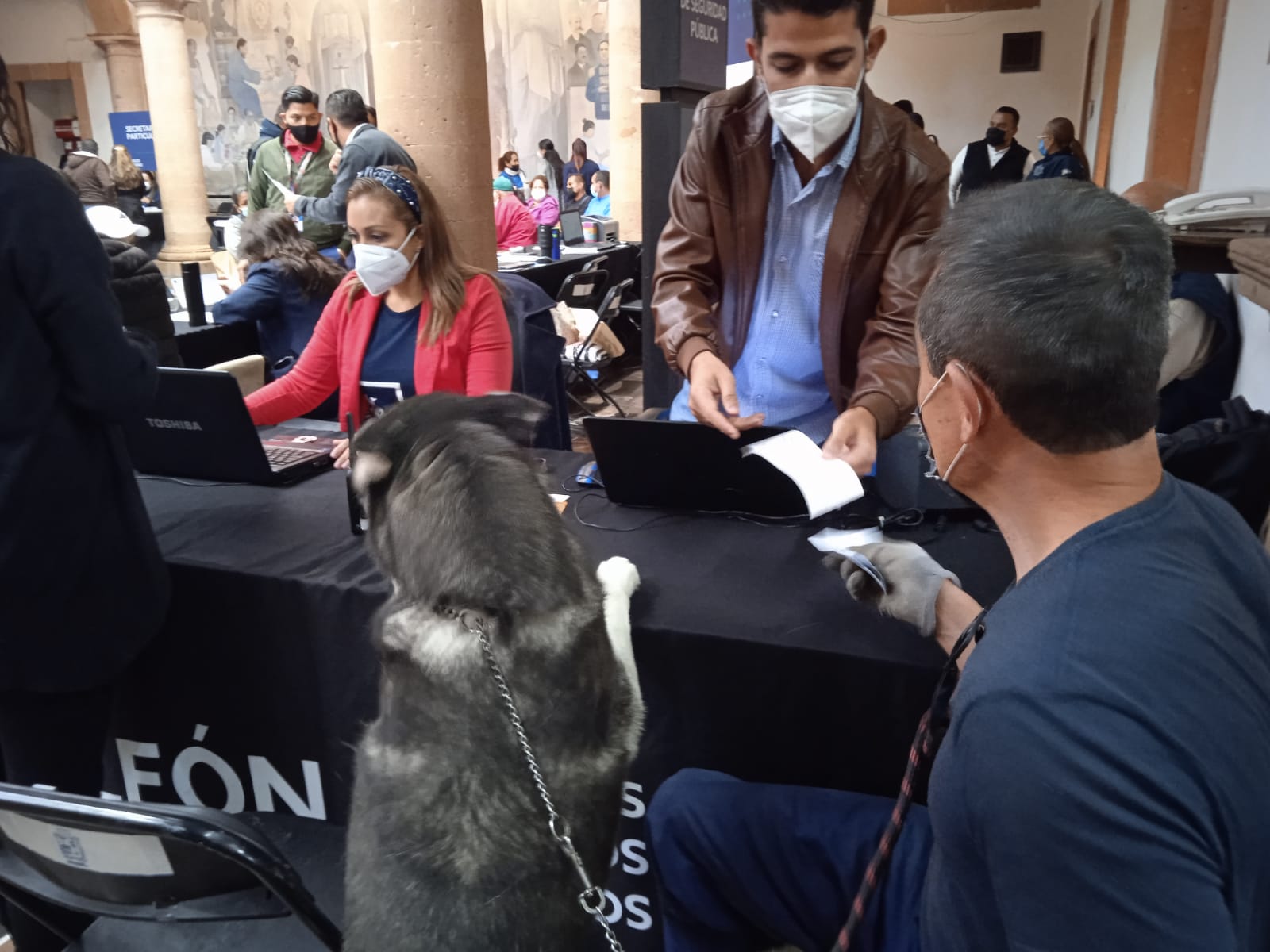 Gerardo y sus mascotas esperaron de manera paciente y ordenada a que llegara su turno para hacer atendidos en la mesa de la Secretaría Particular.
