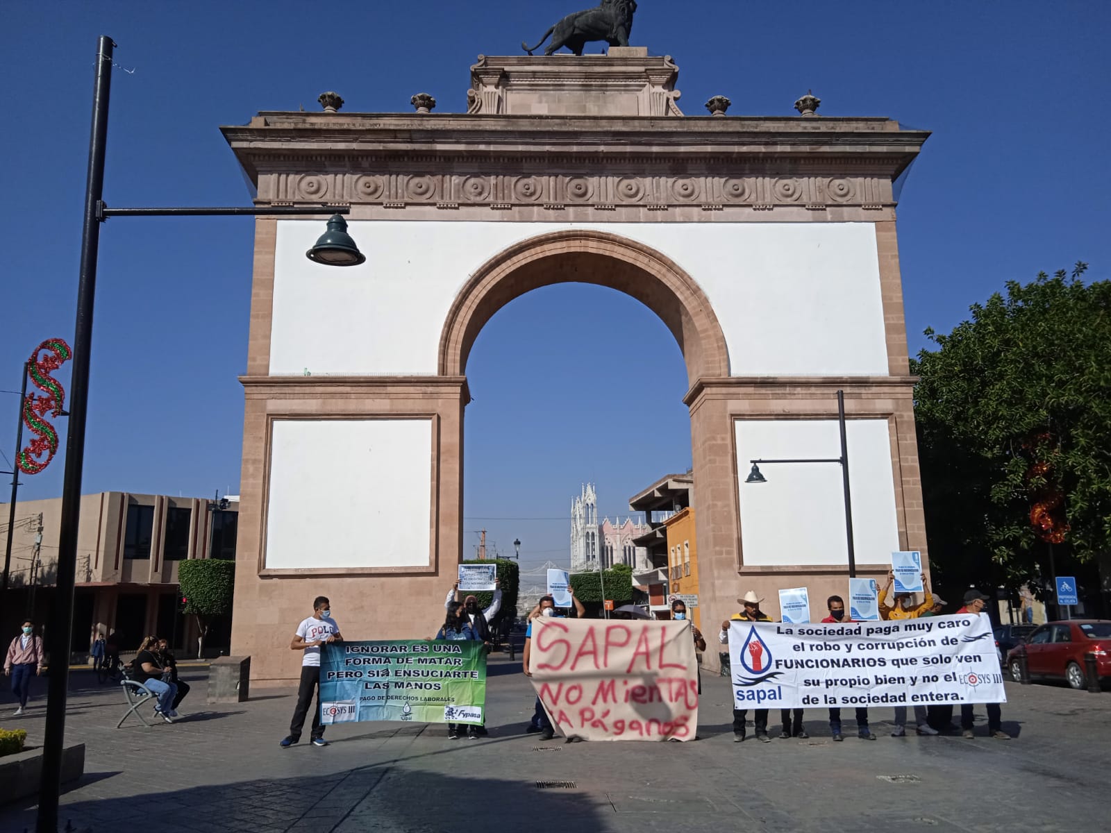 León, Guanajuato.- Tras no llegar a un acuerdo con SAPAL y el Municipio el pasado primero de diciembre, un grupo de 15 extrabajadores de empresas exconcesionarias de la paramunicipal nuevamente se manifestaron de forma pacífica esta mañana en el Arco de la Calzada.