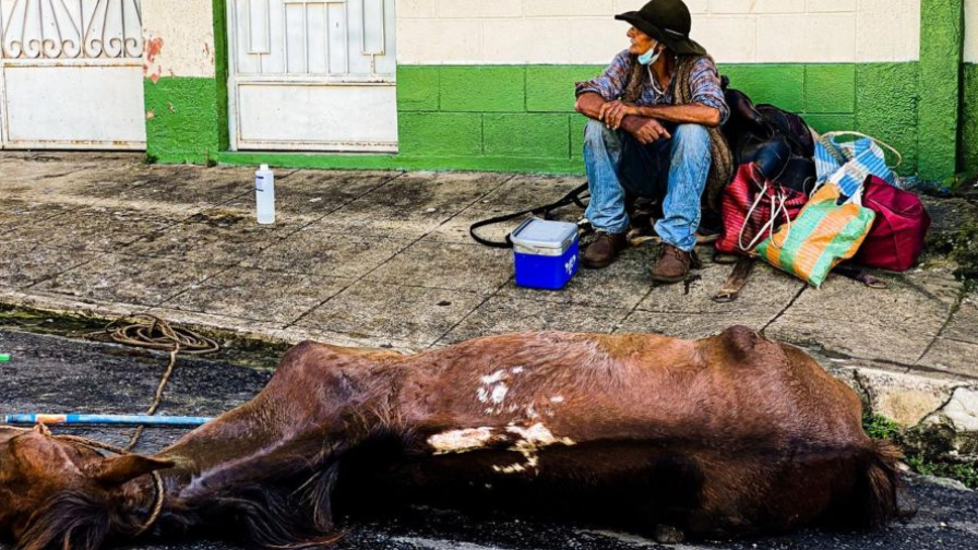 El Salvador.– Un hombre identificado como José Carmen Moya sufrió la muerte de su caballo que lo ayudaba para transportar los lácteos que comercializaba en la calle.