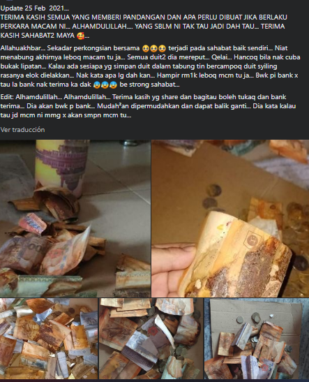 Los hechos se registraron en Malasia, cuando Lily Noorly Mohd Noor había decidido abrir su alcancía en donde tenía aproximadamente 3.5 millones de dólares en monedas y billetes.