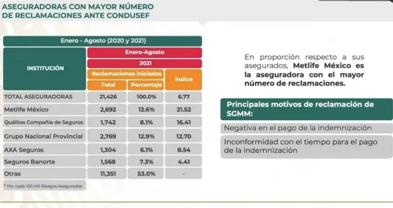 Según Ricardo Sheffield, Metlife México, Quálitas, GNP, AXA Seguros y Seguros Banorte son las que tienen más quejas.