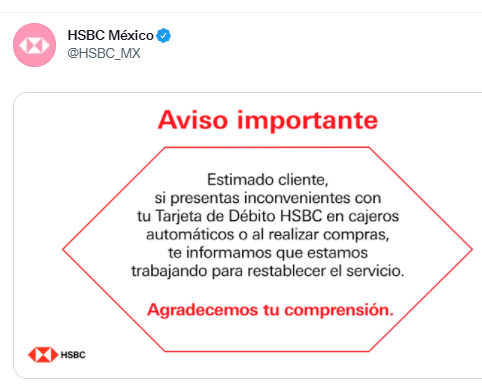 Parece que el servicio en general no sirve, no me deja depositarle a alguien que es de HSBC, así que por el momento tienes congelada la tarjeta hasta que se solucione”; dice uno de los clientes en los canales de comunicación del banco a través de redes sociales.