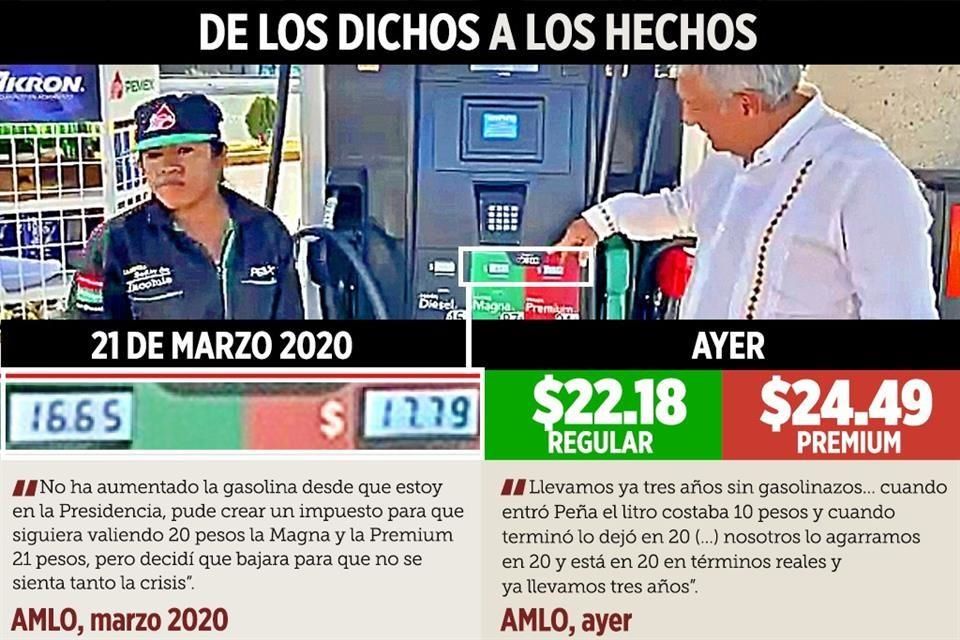 De acuerdo con datos de la plataforma PetroIntelligence, para el 18 de octubre la gasolina premium registró un precio promedio nacional de 22.33 pesos por litro, mientras que para esa misma fecha, pero de diciembre de 2020, el litro rondaba en 18.52 pesos; es decir, registra un incremento del 20.57 por ciento.