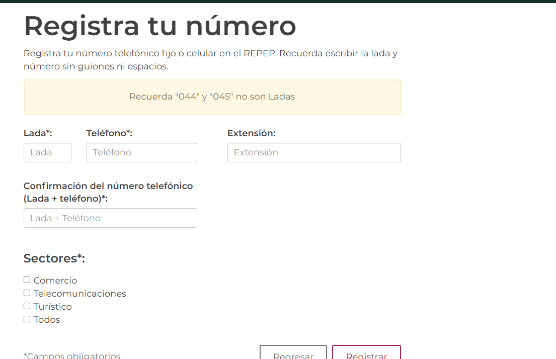 Por vía electrónica, lo primero que debes de hacer es ingresar al sitio oficial del Repep mediante Profeco: https://repep.profeco.gob.mx/registrar_telefono.jsp
