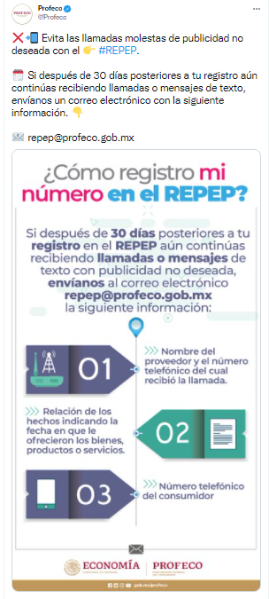 Mediante redes sociales, el organismo explicó cómo darse de alta en la herramienta del Registro Público para Evitar Publicidad (Repep).