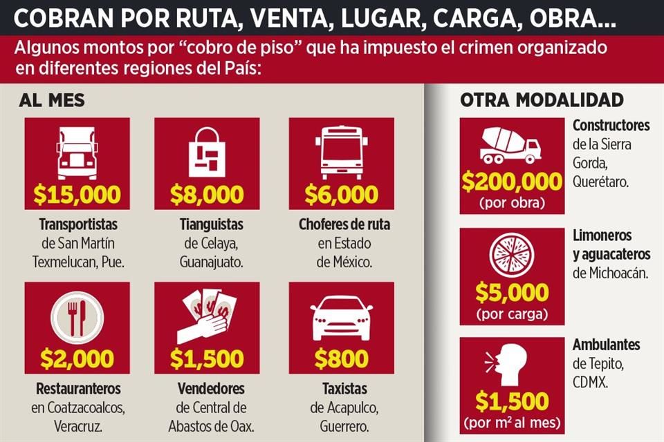 En tanto, en la Central de Abastos de Oaxaca los locatarios pagan mil 500 pesos al mes, mientras que a transportistas poblanos les cobran de 200 a 500 pesos al día por entrar al municipio de San Martín Texmelucan.