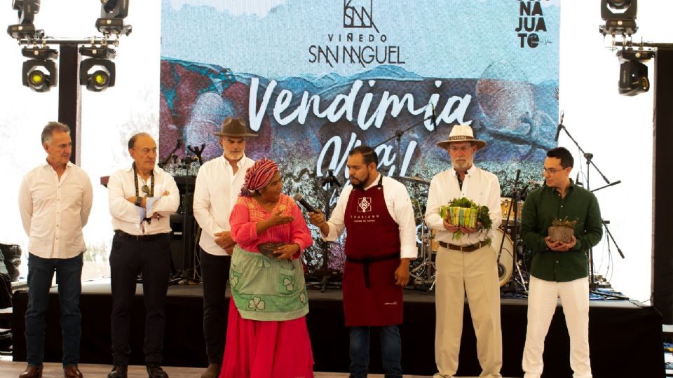 Posteriormente, acompañado por Javier Valverde, director general de Desarrollo Turístico, los señores Héctor y Francisco Cuadra; Jorge Solís, director del viñedo, David Quevedo, chef de trasiego y Consuelo Venancio, cocinera tradicional otomí, llevaron a cabo el ritual de la tortilla ceremonial para inaugurar el que se considera el sello ceremonial más grande del mundo y que plasmó el nombre del viñedo sobre una tortilla hecha por las autoridades.