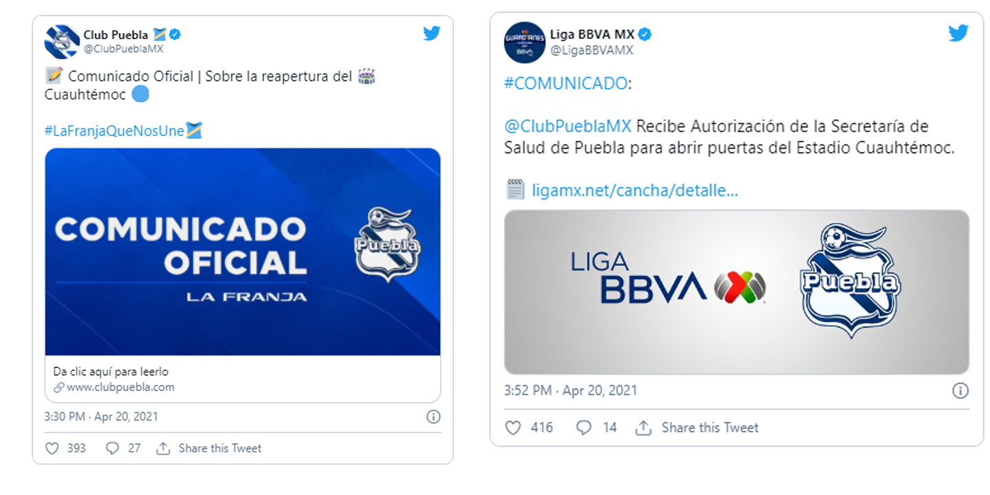 El día del juego, además de solicitar al público el apego a los protocolos sanitarios dentro y fuera del recinto, se realizarán pruebas gratuitas de detección de COVID-19 de forma aleatoria a algunos de los asistentes”, detalló Club Puebla.