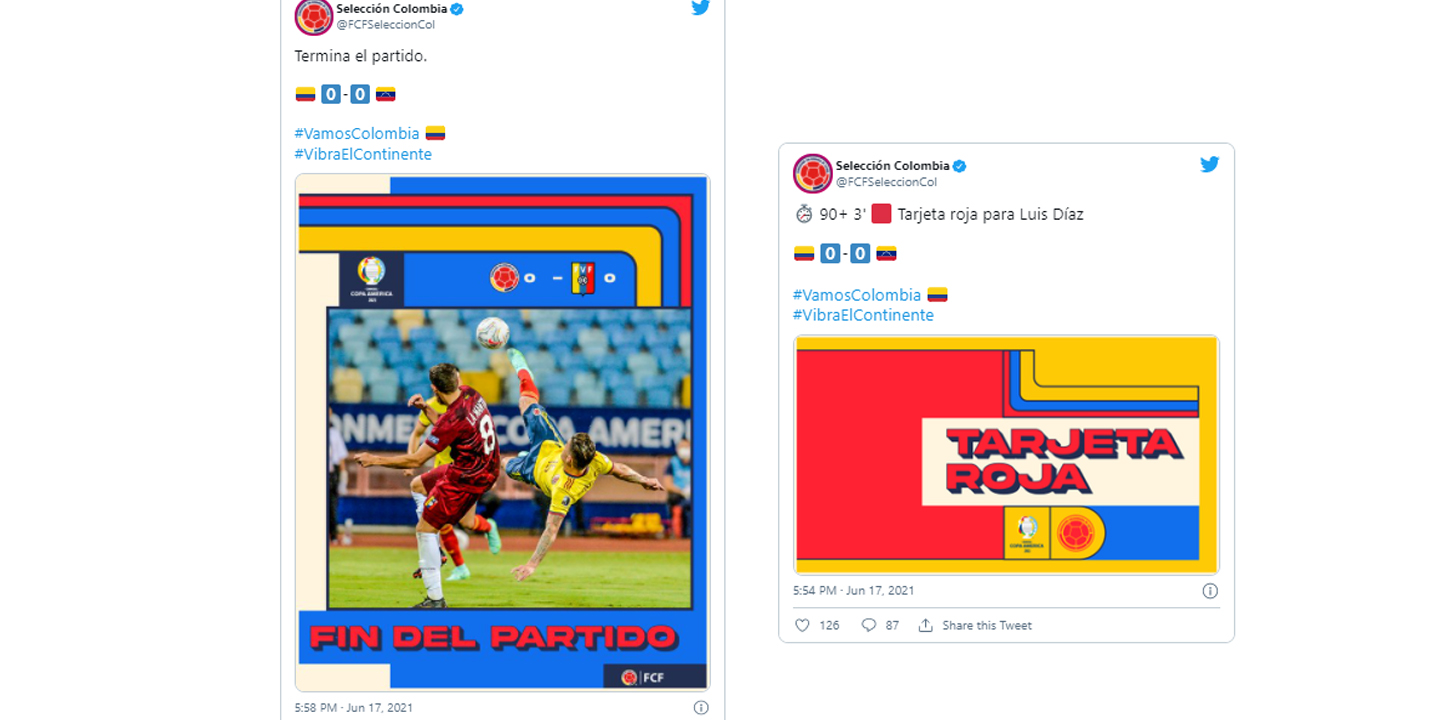Con el empate, Colombia llegó a cuatro puntos y es líder en el Grupo A, mientras que Venezuela sumó su primer punto en Copa América 2021
