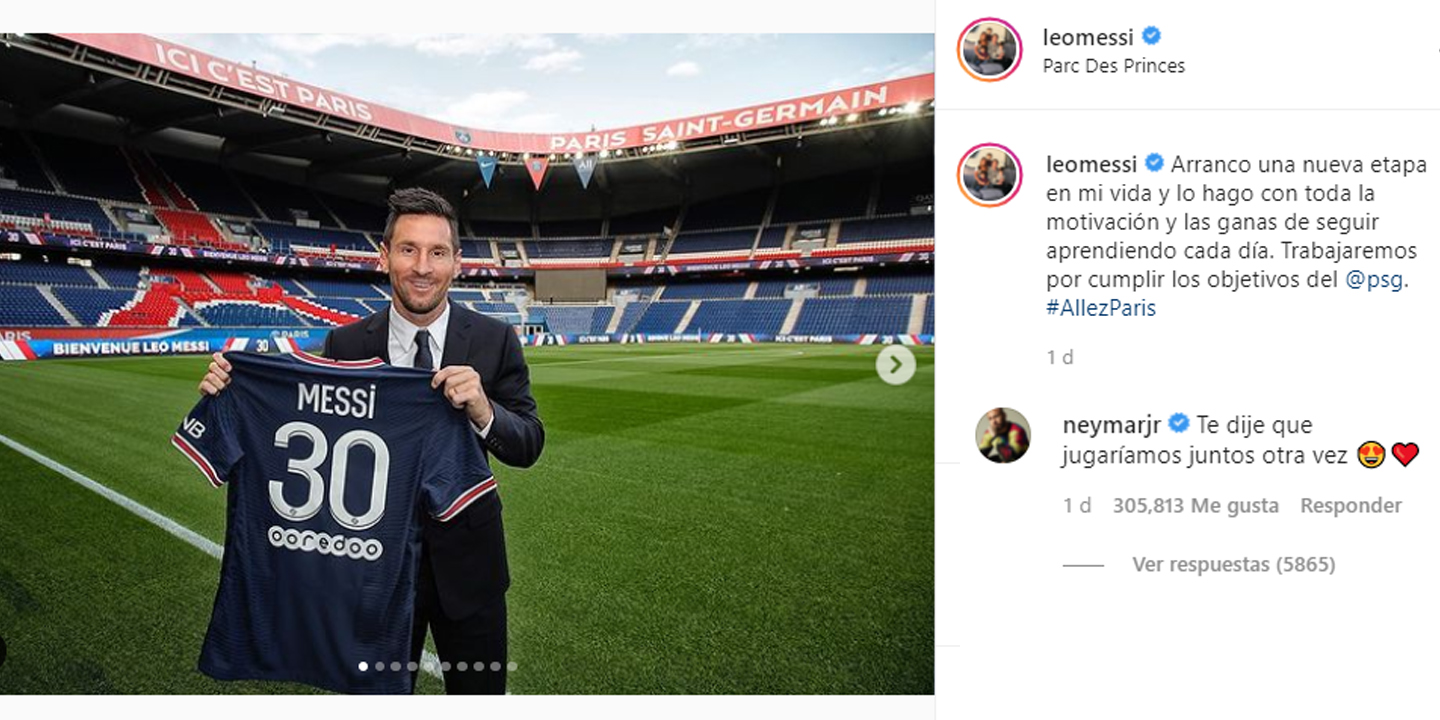 Por su parte, Messi aseguró en sus redes sociales que inicia una nueva etapa en su vida, con motivación y ganas de seguir aprendiendo, con la mira de cumplir los objetivos en PSG, y en su publicación, recibió el comentario de Neymar.
