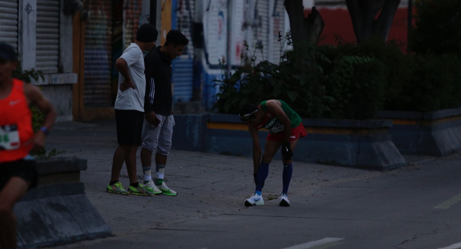 A pocos metros de llegar al Parque Hidalgo, Vargas bajó su ritmo y al orillarse fue auxiliado por los cuerpos médicos quienes revisaron al deportista.