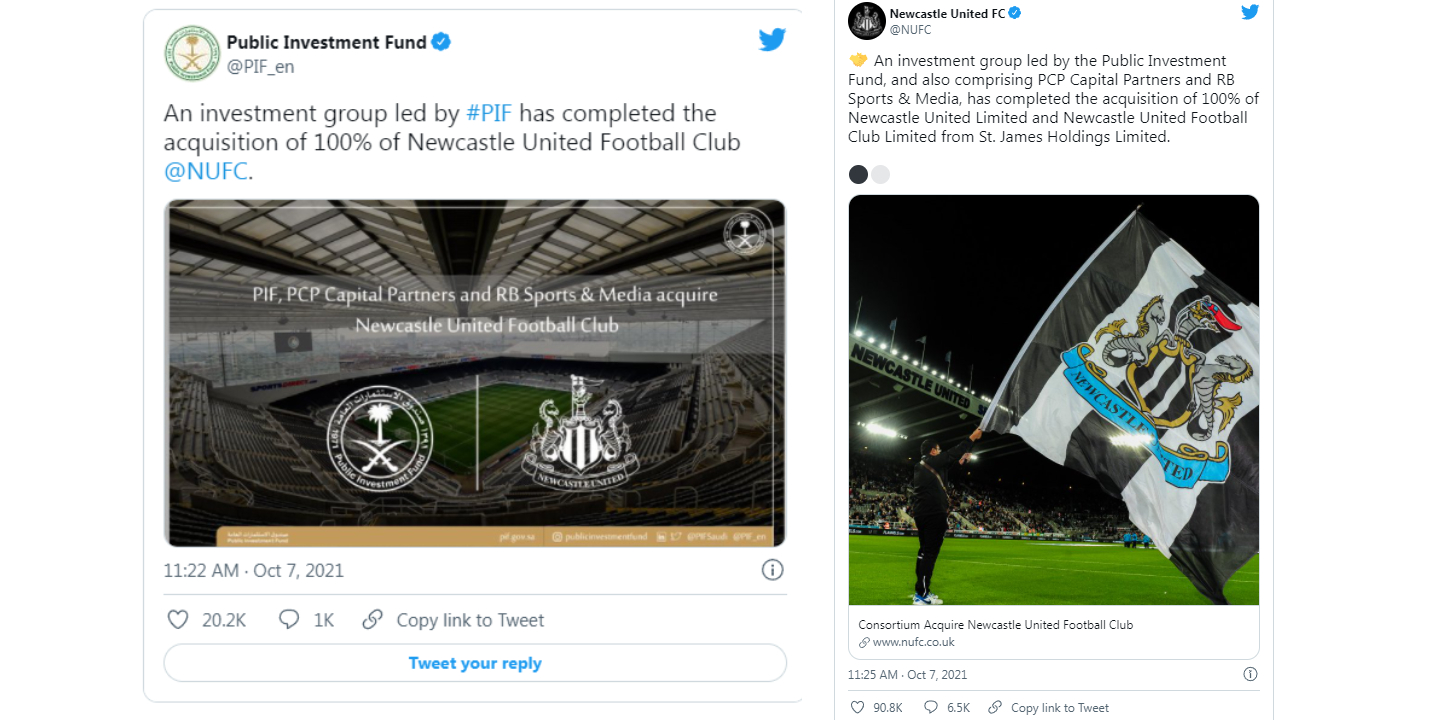 Mediante su página web, Newcastle dio a conocer que la compra será a largo plazo y los nuevos dueños están confiados en el éxito a futuro del club de Premier League. De acuerdo con información de medios de Inglaterra, el Fondo de Inversión Pública pagó 300 millones de euros en la compra del equipo.