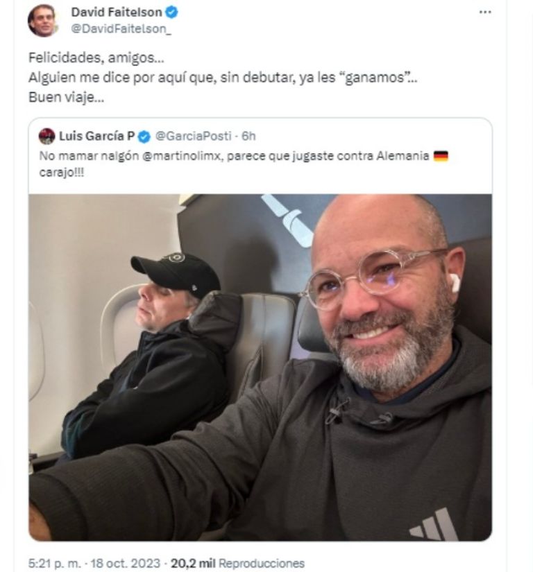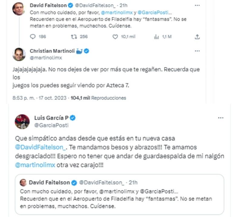 En su cuenta de X, Faitelson pidió a Martinoli y Luis García tener cuidado, porque abordarían en el Aeropuerto de Filadelfia, donde el primer cronista fue agredido en 2015 por Miguel Herrera.