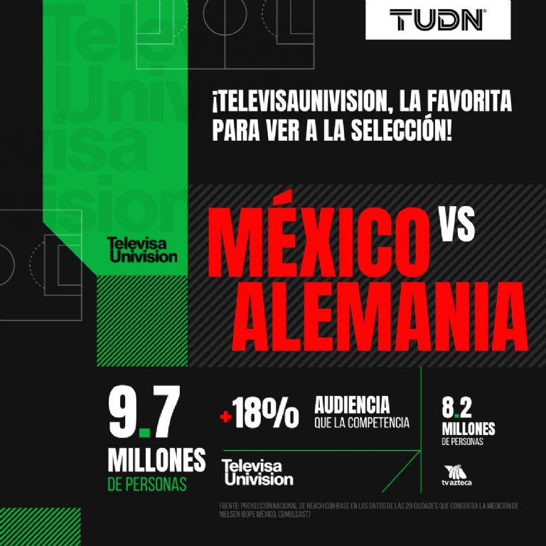 De acuerdo con información de TelevisaUnivision, 9.7 millones de personas vieron el partido de la Selección Mexicana contra el equipo de Alemania en su transmisión, superando lo 8.2 millones que tuvo TV Azteca… que tuvo otros datos.