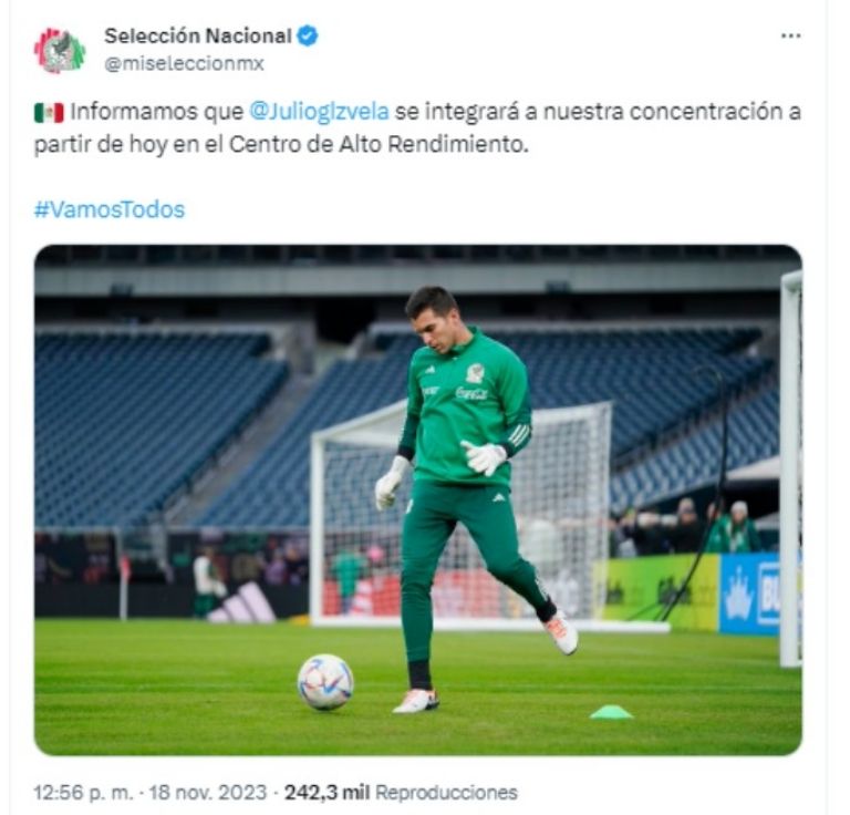 Este sábado, la Selección Mexicana dio a conocer que el arquero de Pumas, Julio González, formará parte del equipo que jugará el partido de vuelta contra la Selección de Honduras, por lo que entrenará en el Centro de Alto Rendimiento de la Ciudad de México.