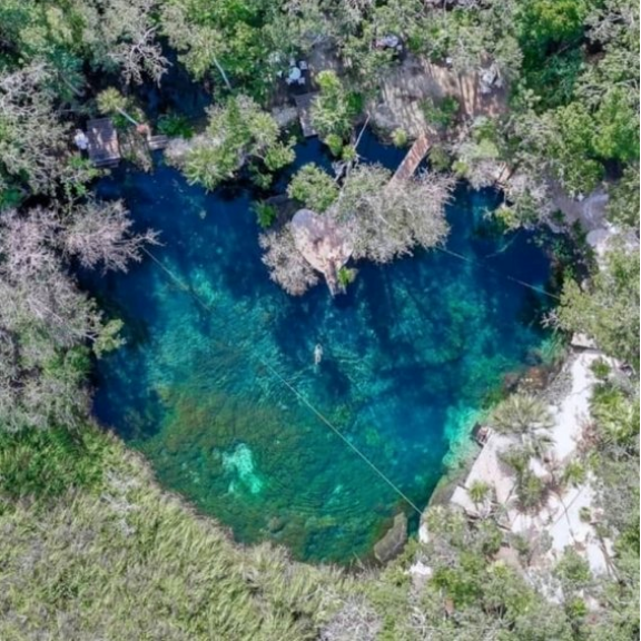 Aunque pareciera que este cenote es artificial, se trata de una formación completamente natural que, debido a la erosión del suelo y los minerales, ha tomado su forma peculiar.